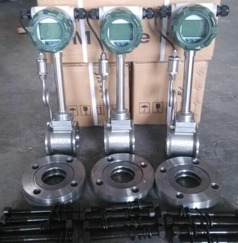 JN-LYWBJC1409夹持式补偿一体化涡街流量计说明 概述: 涡街流量计是根据卡门涡街理论。卡门涡街释放频率f和流速V成正比,因此通过测量卡门涡街释放频率就可算出瞬时流量。涡街流量传感器的旋涡释放频率是由旋涡交替地作用于检测传感器(探头)上的,应力通过在它内部的压电晶体或差动电容元件来检出的,以此制成的一种速度式流量仪表。 压电式涡街流量计:应力式涡街流量计是速度式流量计的一种,它以卡门涡街理论为基础,采用压电晶体检测,流体通过管道内三角柱时所产生的旋涡频率,从而测量出流体的流量。结构简单,无运动磨损部件,测量平顺,量程宽,阻力损失小。
