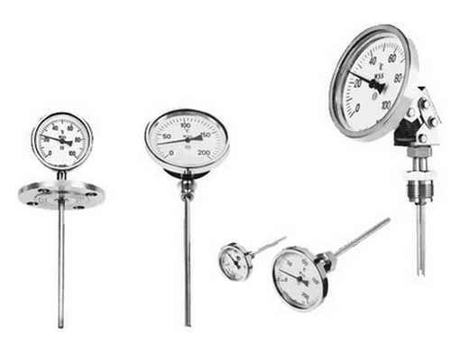 JN-LWSS□□系列双金属温度计说明 概述: 双金属温度计是一种测量中低温度的现场检测仪表。WSS系列温度计可以直接测量各种生产过程中的-80℃-+500℃范围内液体蒸汽和气体介质温度。温度计是基于绕制成环性弯曲状的双金属片组成。一端受热膨胀时,带动指针旋转,工作仪表便显示出热电势所应的温度值。 JN-LWSS□□系列双金属温度计工艺原理: 现场显示温度,直观方便 抽芯式温度计可不停机短时间维护或更换机芯 轴向型、径向型、万向型等品种齐全,适应于各种现场安装的需要