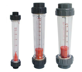 结构原理: 流量计主要由一根自下而上扩大的锥形玻管和一只随流体流量大小上下移动的浮子组成。流体自下而上流经锥管时,流体动能在浮子上产生的升力S和流体的浮力A使浮子上升,当升力S与浮力A之和等于浮子自身重力G时,浮子处于平衡,平顺在某一高度位置上,锥管上的刻度指示流体的流量值。 注:(DN2~10)流量计为侧进侧出,软管或螺纹连接,下基座上带针型流量调节阀。 玻璃转子流量计液体流量均为以20℃清水标定刻度,气体流量均以20℃、101325Pa空气标定刻度。 根据用户要求,可以做定制流量的流量计,DN100通径流量达120m3/h,气体流量达3500m3/h,也可进行修正标定。